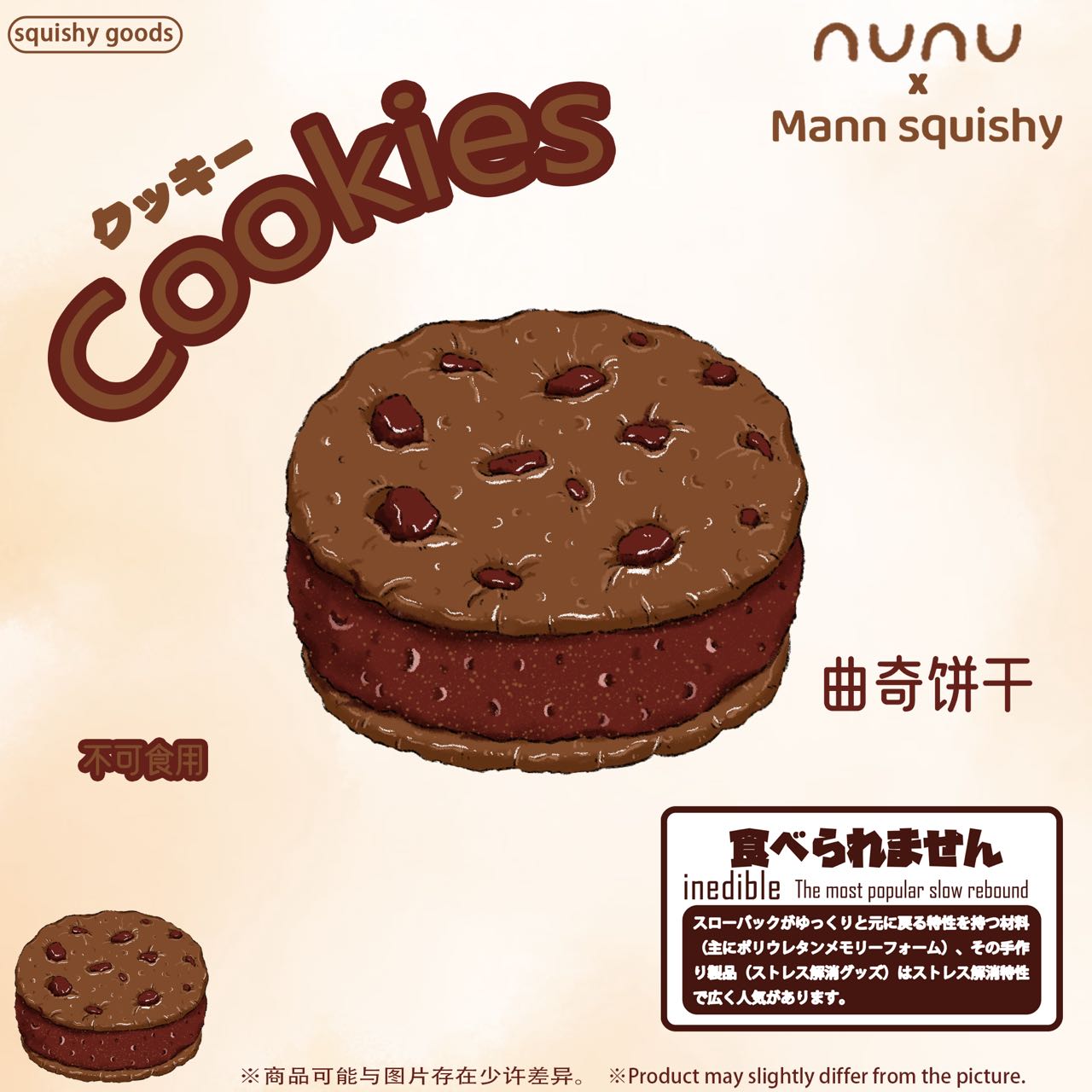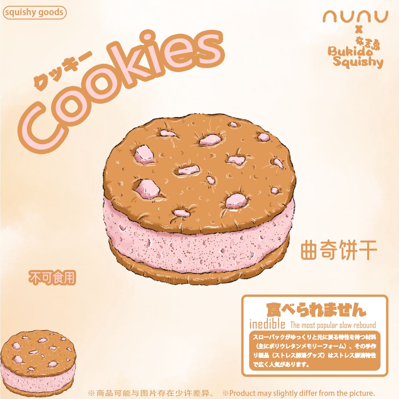 Super soft and creamy NUNU squishy sandwich cookie with slow rising texture. Perfect for squeezing, stress relief, and sensory play. A popular trending fidget toy for kids and adults.